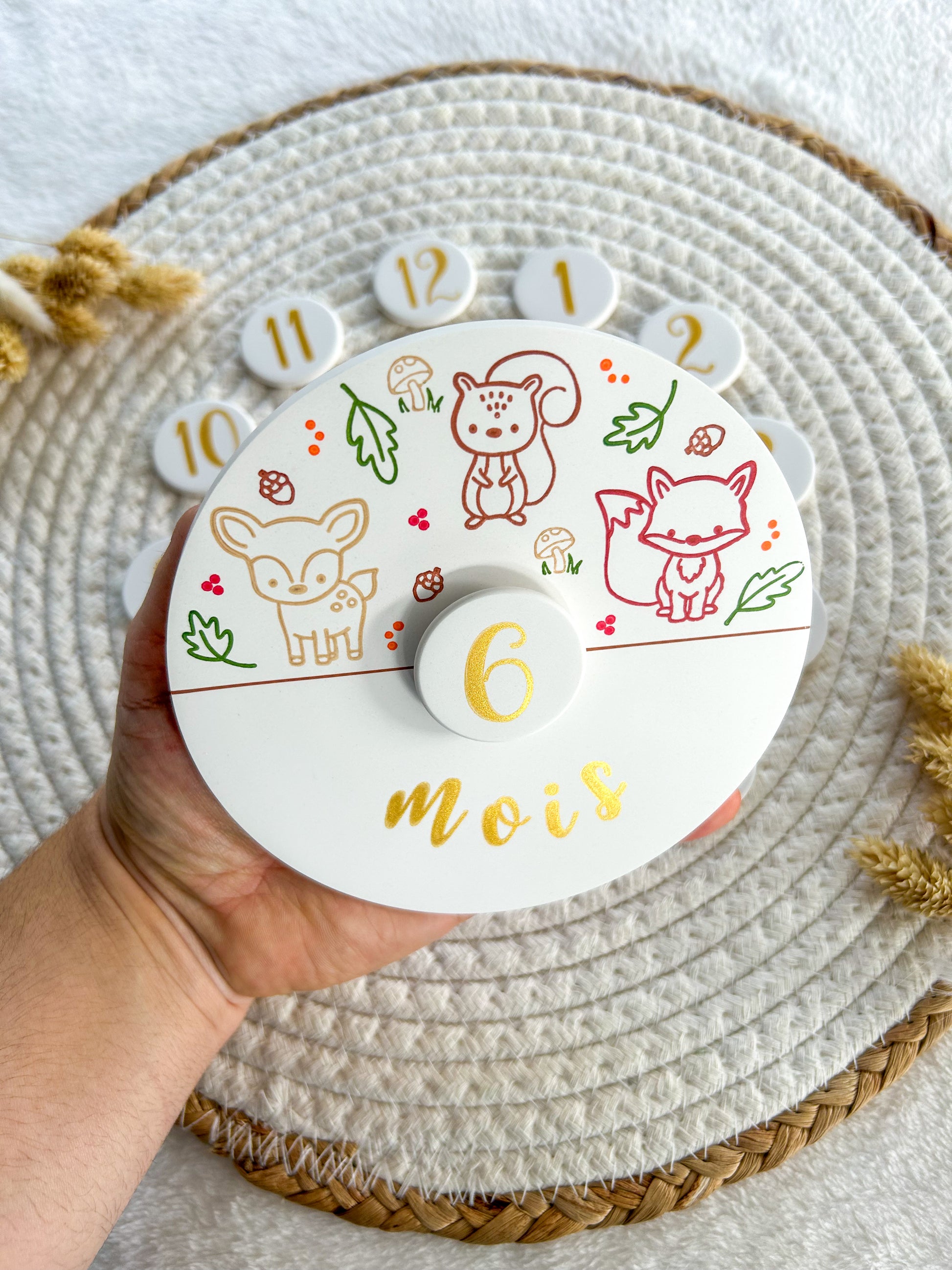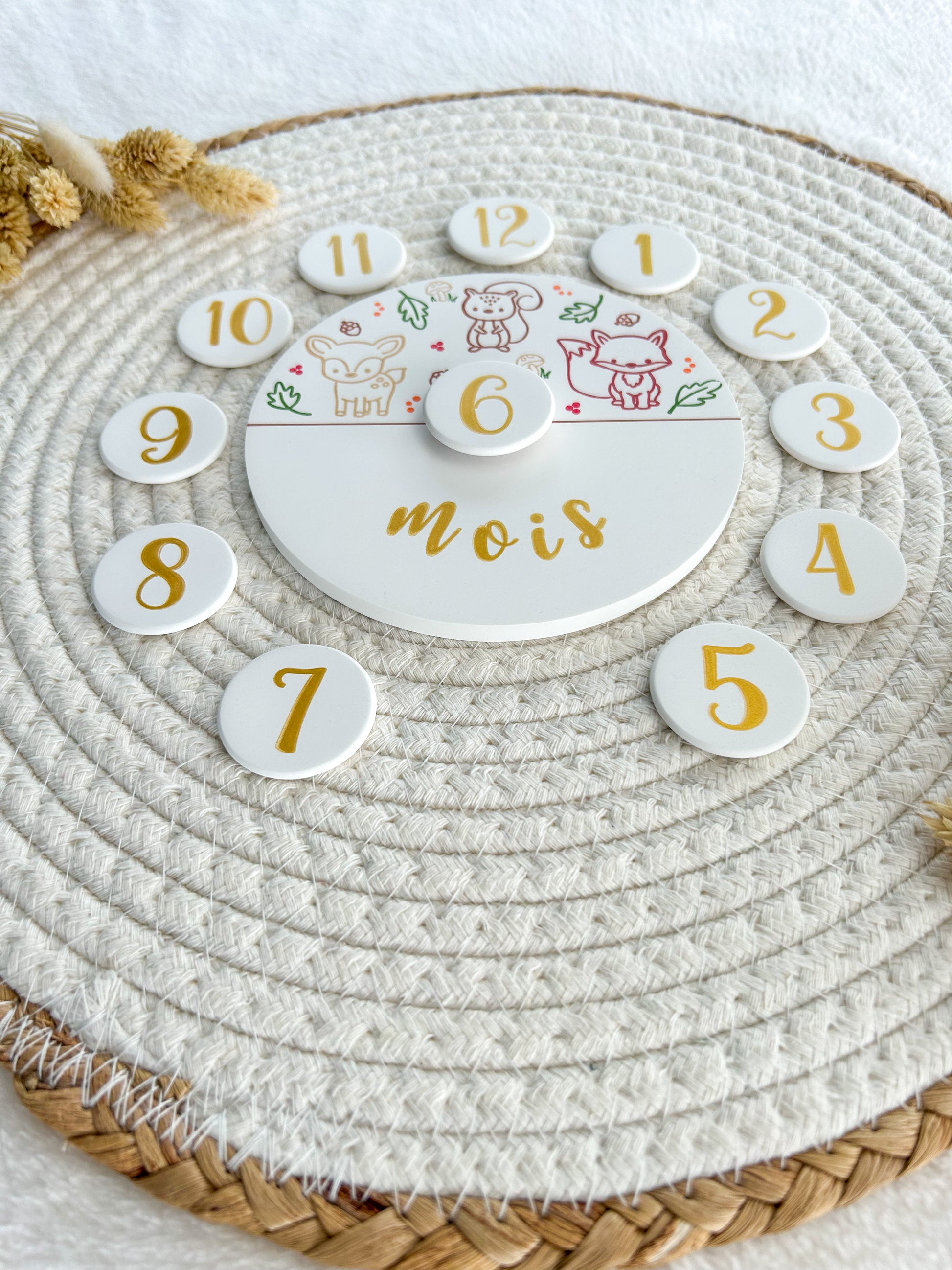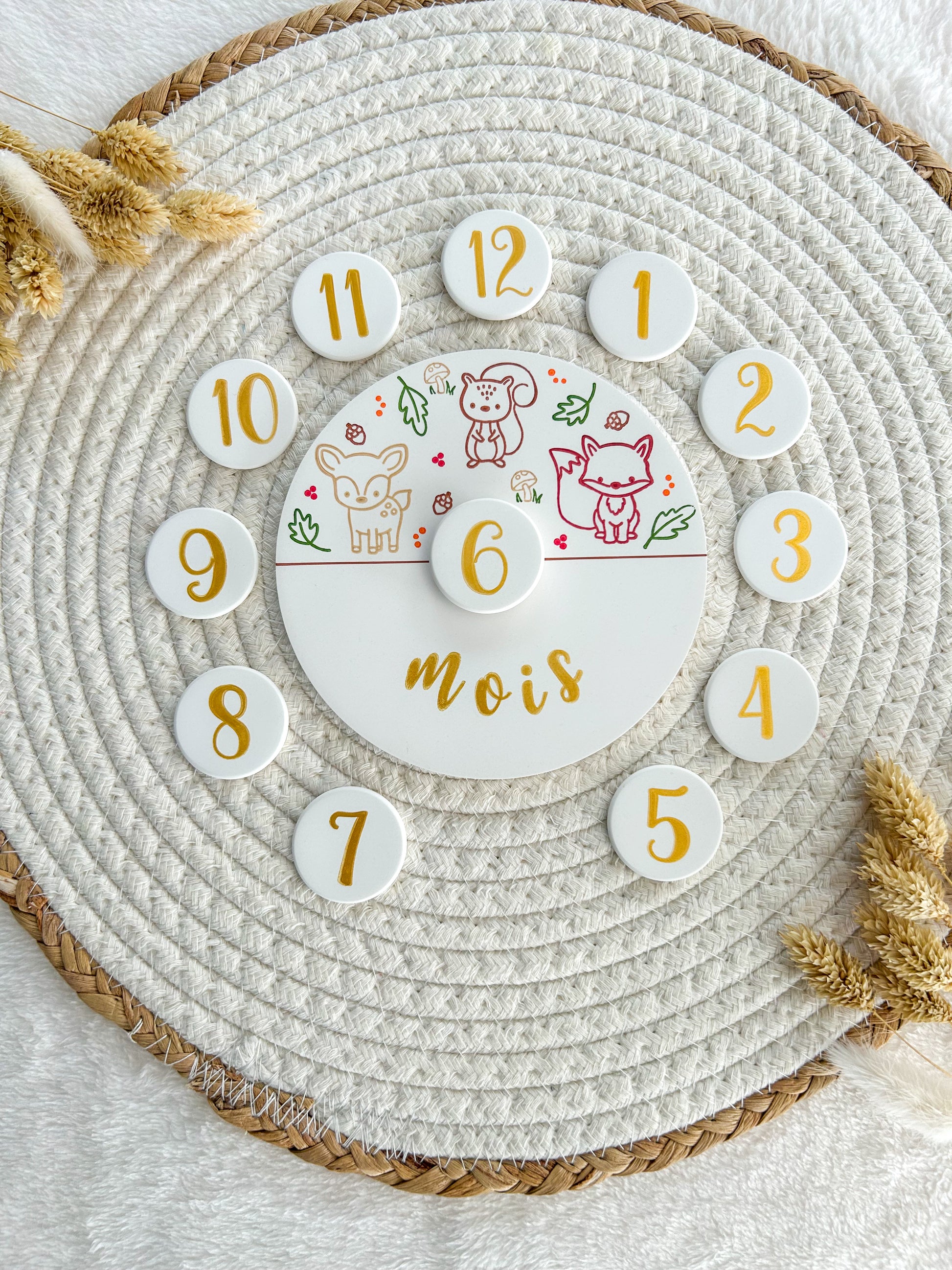 Grâce à elle, vous pourrez garder un souvenir de l'évolution de votre enfant. Chaque mois, placer au centre la pièce qui correspond à l'âge de votre enfant puis prenez la carte en photo à coté de votre enfant pour immortaliser l'instant.